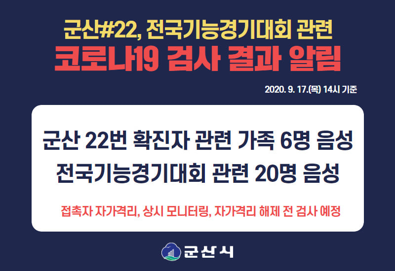 68 군산 22번, 전국기능경기대회 관련 코로나19 검사결과알림(9월 17일 14시 기준) 다운받기 총관리자 20.09.17 5095