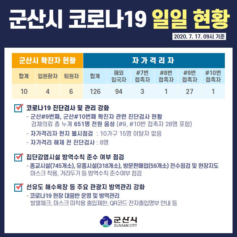34 군산시 코로나19 일일 현황[7.17.(금) 9시 기준] 다운받기 총관리자 20.07.17 3155