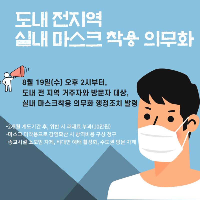 38 도내 전지역 실내 마스크 착용 의무화(8월 19일 오후 2시부터) 다운받기 총관리자 20.08.20 6351