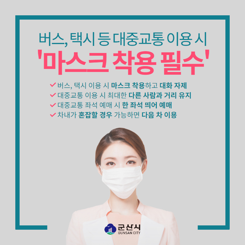 24 버스, 택시 등 대중교통 이용 시 '마스크 착용 필수' 다운받기 총관리자 20.05.26 3075