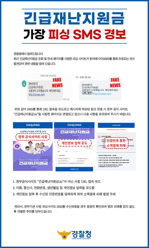 25 긴급재난지원금 가장 '피싱 SMS 경보' 다운받기 총관리자 20.05.27 1073