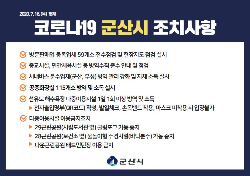 32 코로나19 군산시 조치사항[7월 16일 (목)] 다운받기 총관리자 20.07.16 1141