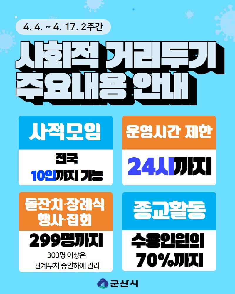 694 2022. 4. 4.~2022. 4. 17. 사회적 거리두기 강화방안 연장 안내 다운받기 총관리자 22.04.04 631