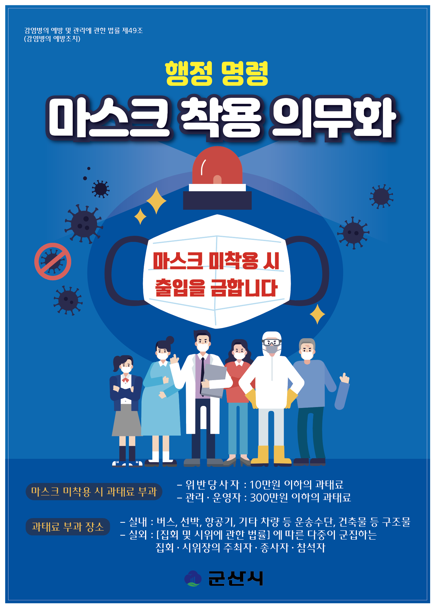 마스크착용의무화 단속 시행합니다.