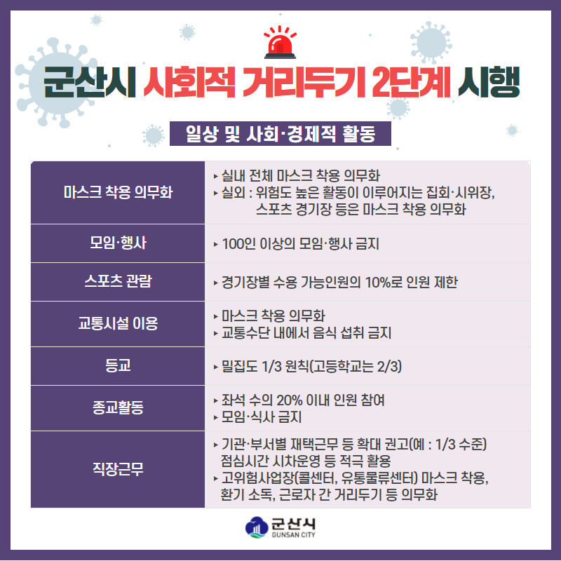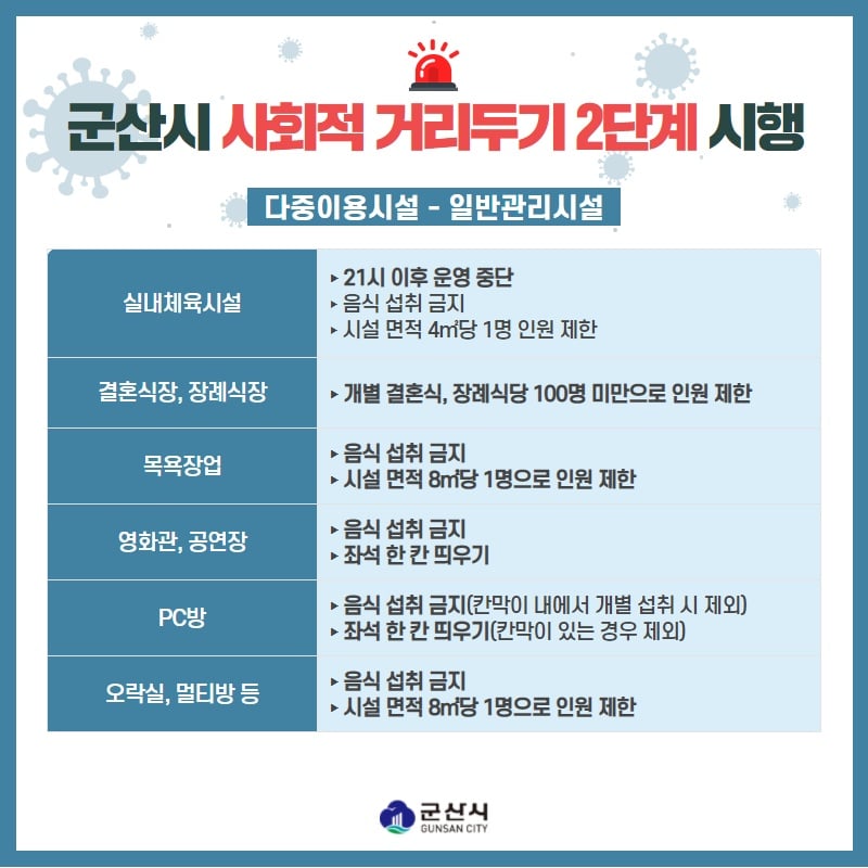 군산시, 사회적거리두기 2단계 시행