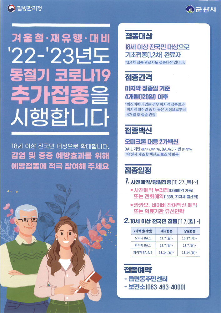 | 293 | 겨울철 재유행 대비 '22-'23년도 동절기 코로나19 추가접종 안내 |