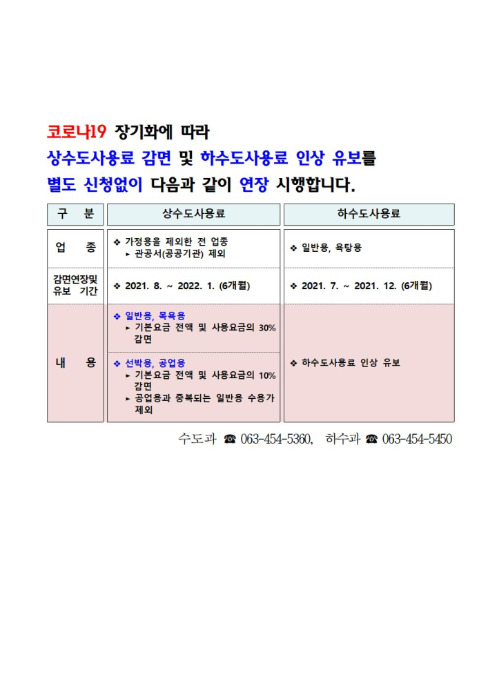 | 264 | 코로나19 장기화에 따라 상수도사용료 감면 및 하수도사용로 인상 유보 연장 안내 |