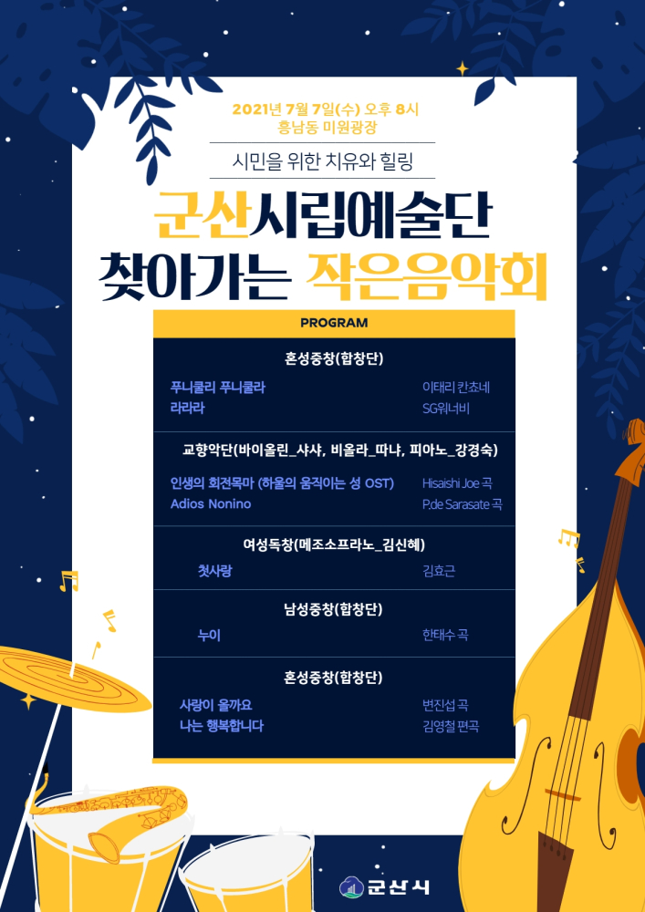 | 250 | “시민을 위한 치유와 힐링” 시립예술단 찾아가는 작은음악회 안내 |