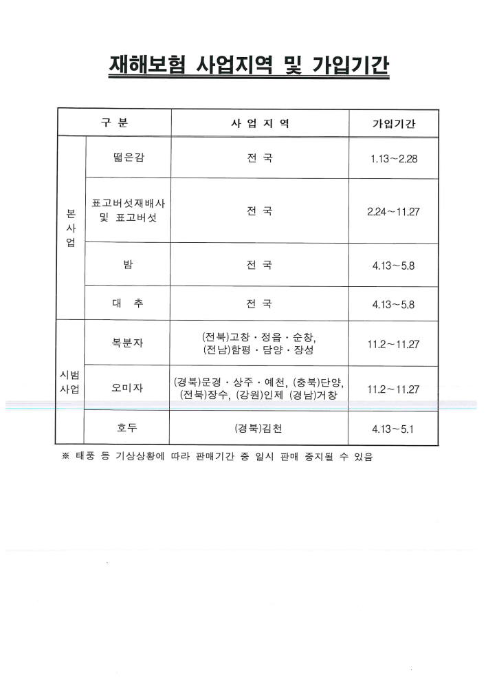 | 136 | 2020 임산물 재해보험 사업지역 및 가입기간 안내 |