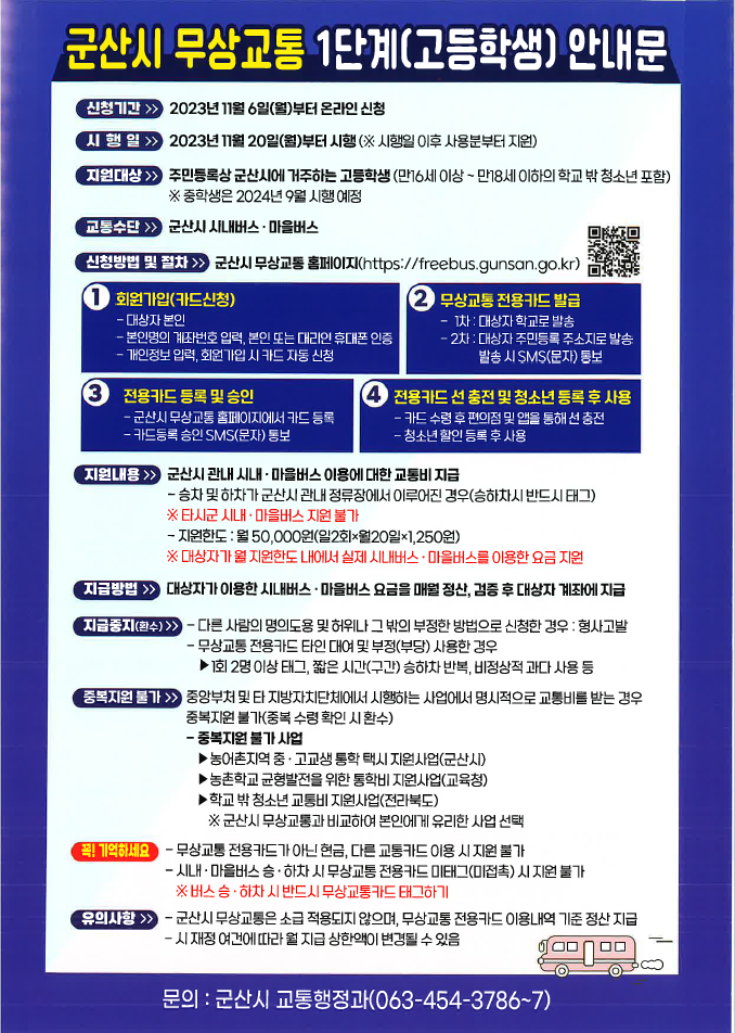 | 346 | 군산시 무상교통 1단계(고등학생) 안내문 |