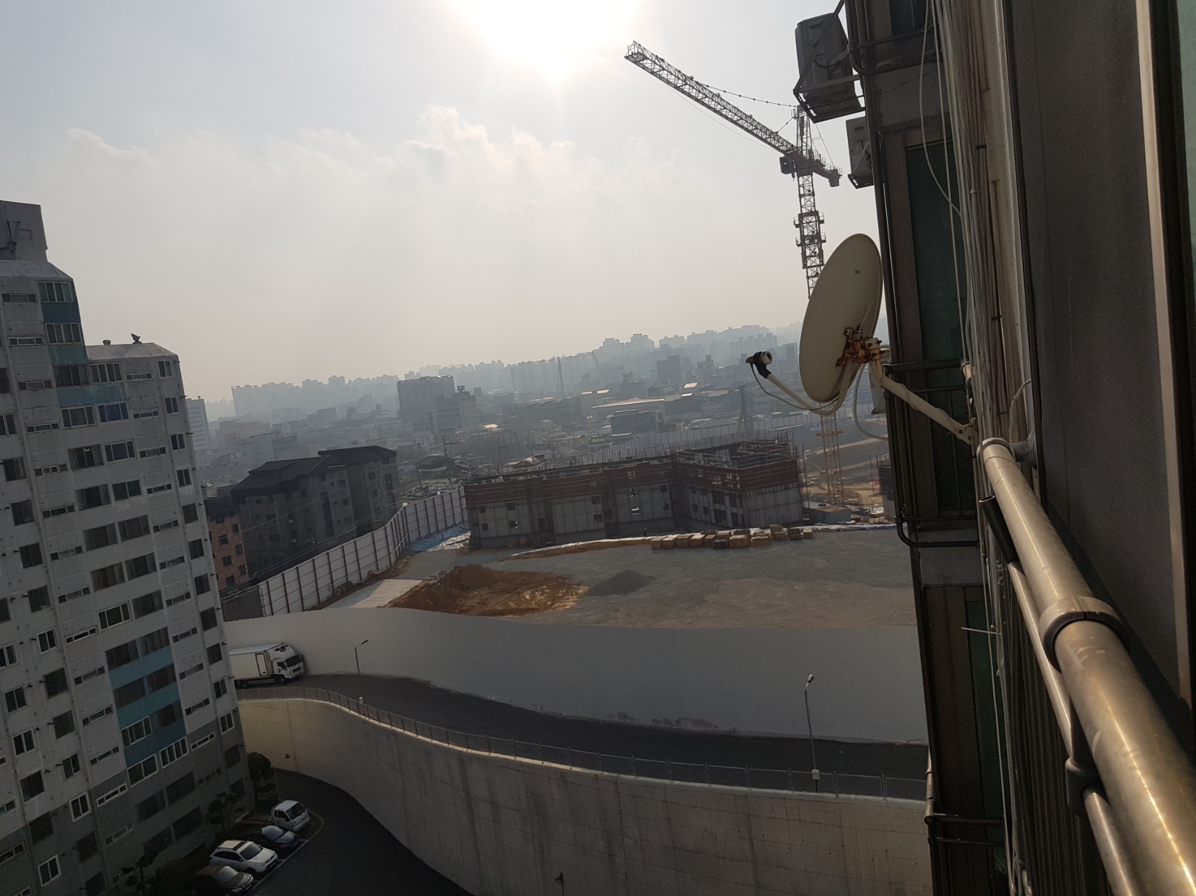그런데 최근 중국에서 넘어오는 미세먼지도 있겠지만 흙먼지가 매우 심해졌습니다. 사실 12층에 거주하고 있기에 먼지가 많이 발생하여 우리가 거주하는 동신아파트로 분진이 날아올 수밖에 없는 상황입니다.