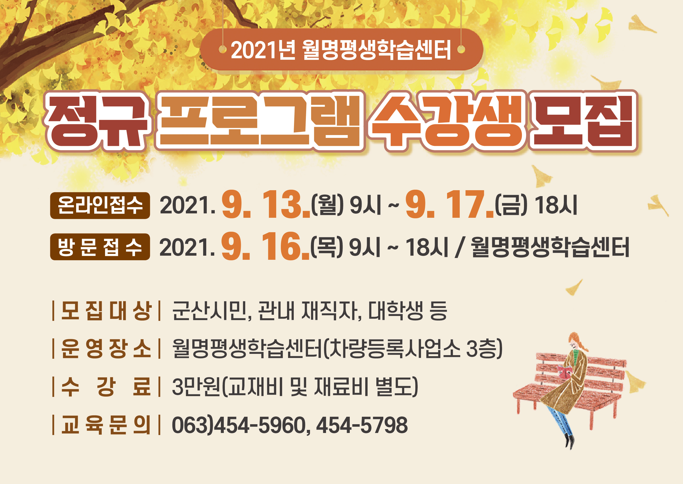 □ 모집방법 : 선착순 인터넷 접수(군산시평생학습정보망), 방문접수(월명평생학습센터)