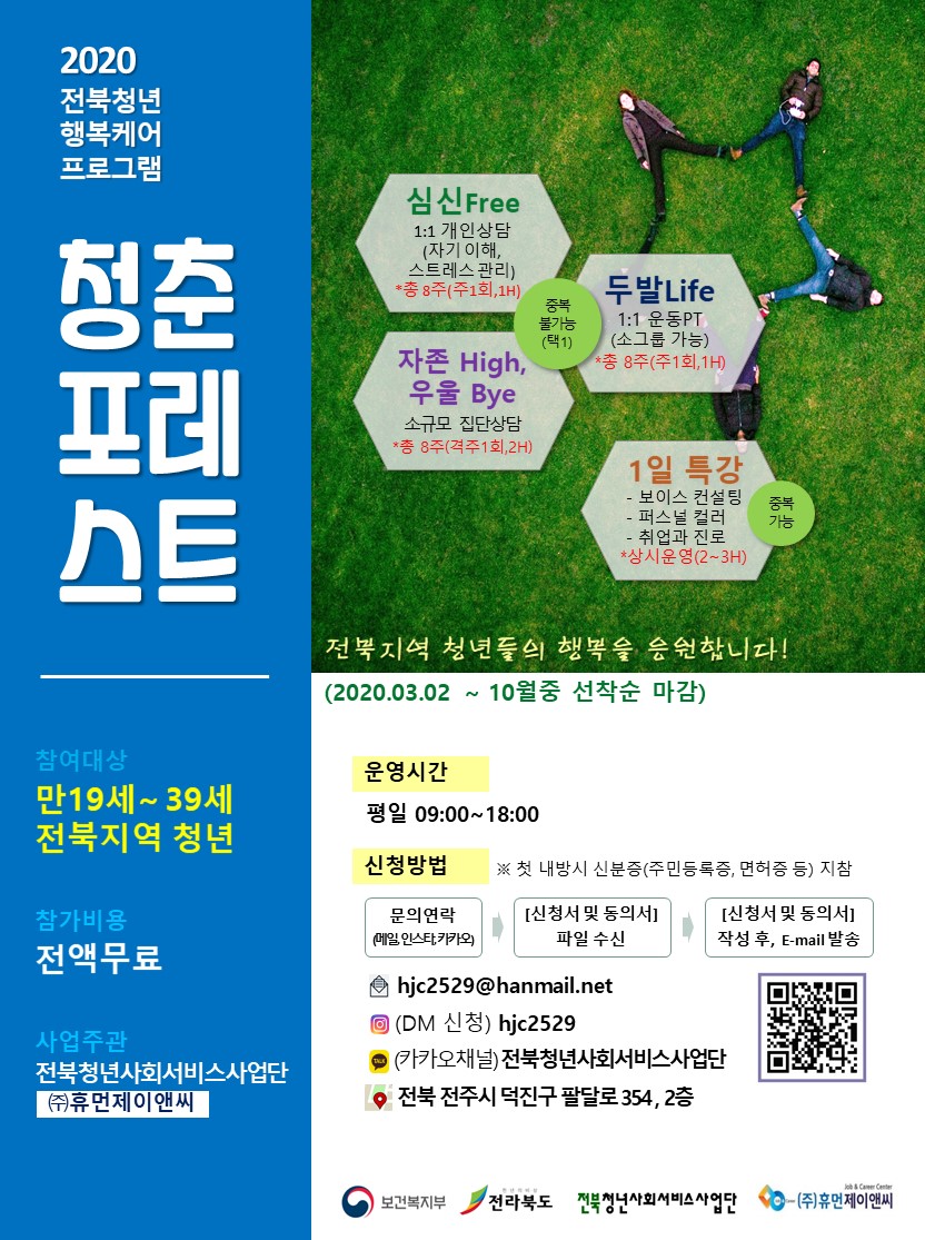 2020년 전북청년사회서비스사업단이 신규 이용자를 다음과 같이 모집합니다.