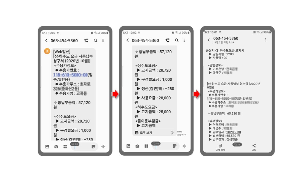 상하수도사용료 종이 고지서 대신 핸드폰 문자로 전송받아