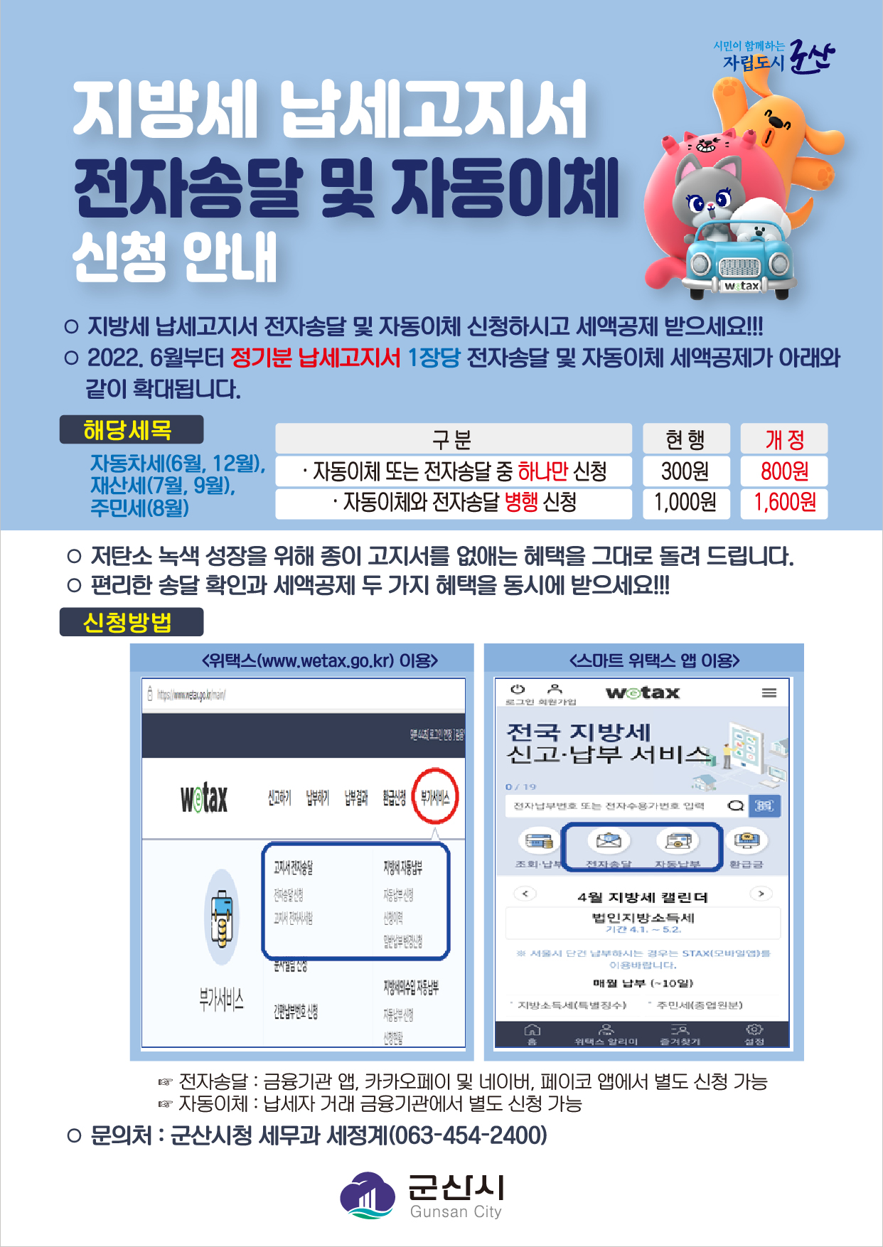 ○ 문의처: 군산시청 세무과 세정계(☎063-454-2400)