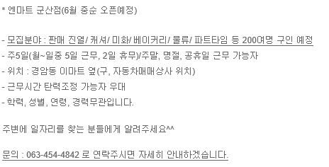 | 589 | 엔마트 군산점 직원 모집 홍보 |