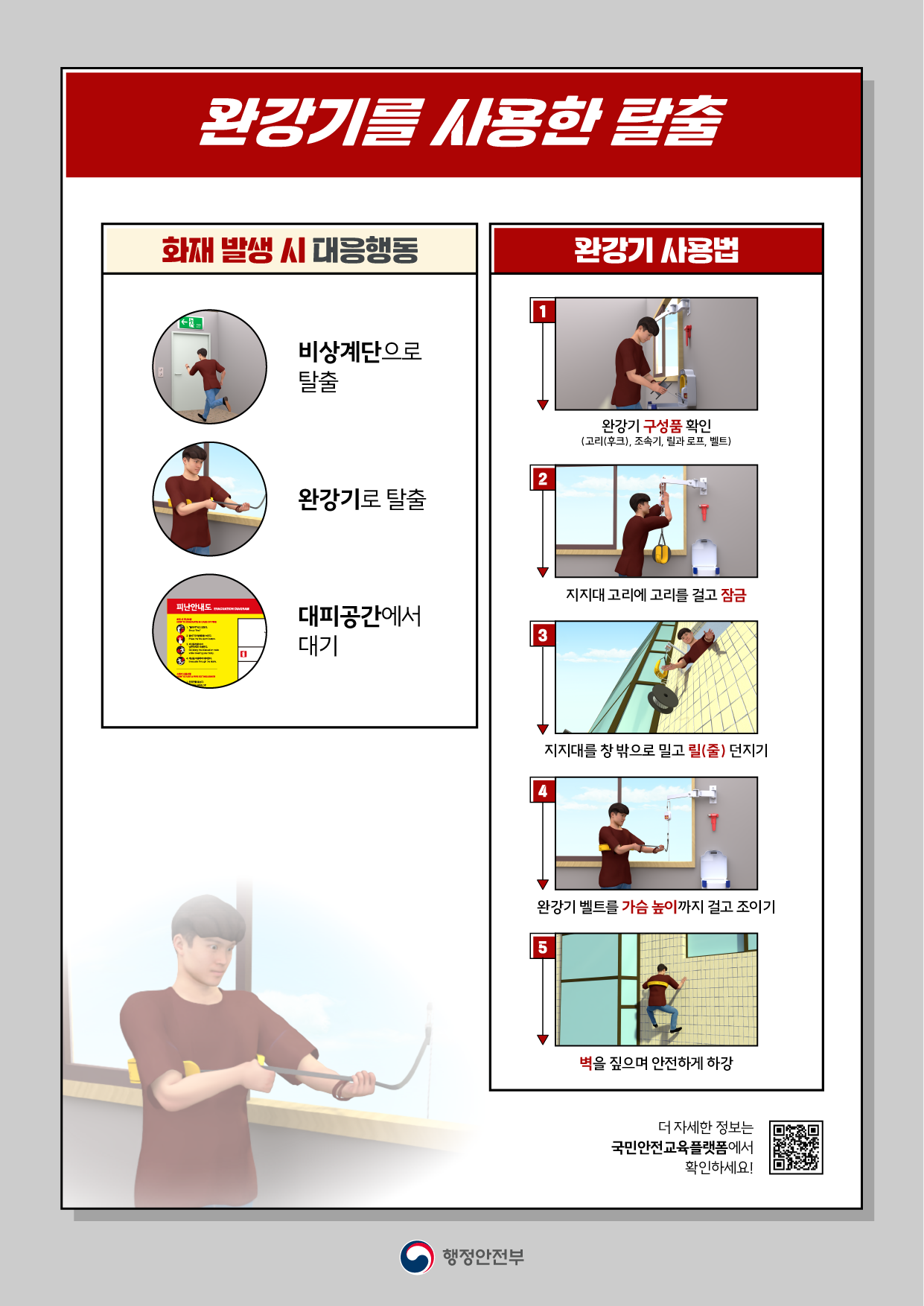최근 숙박업소 화재 발생 시 완강기 사용법 미숙지로 인해 다수의 인명피해가 발생하고 있어 많은 시민이 완강이 사용법을 알 수 있도록 홍보하오니 참고하시기 바랍니다.