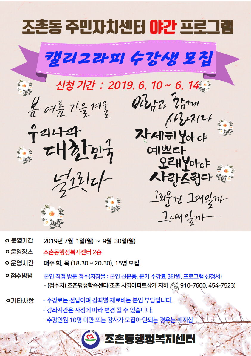 - 접 수 처 : 조촌평생학습센터(☎910-7600)