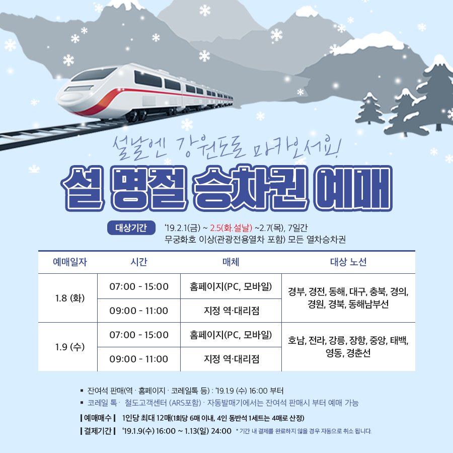 7467 2019년도 설 열차예매 소식 및 기간 다운받기 *** 19.01.08 2744