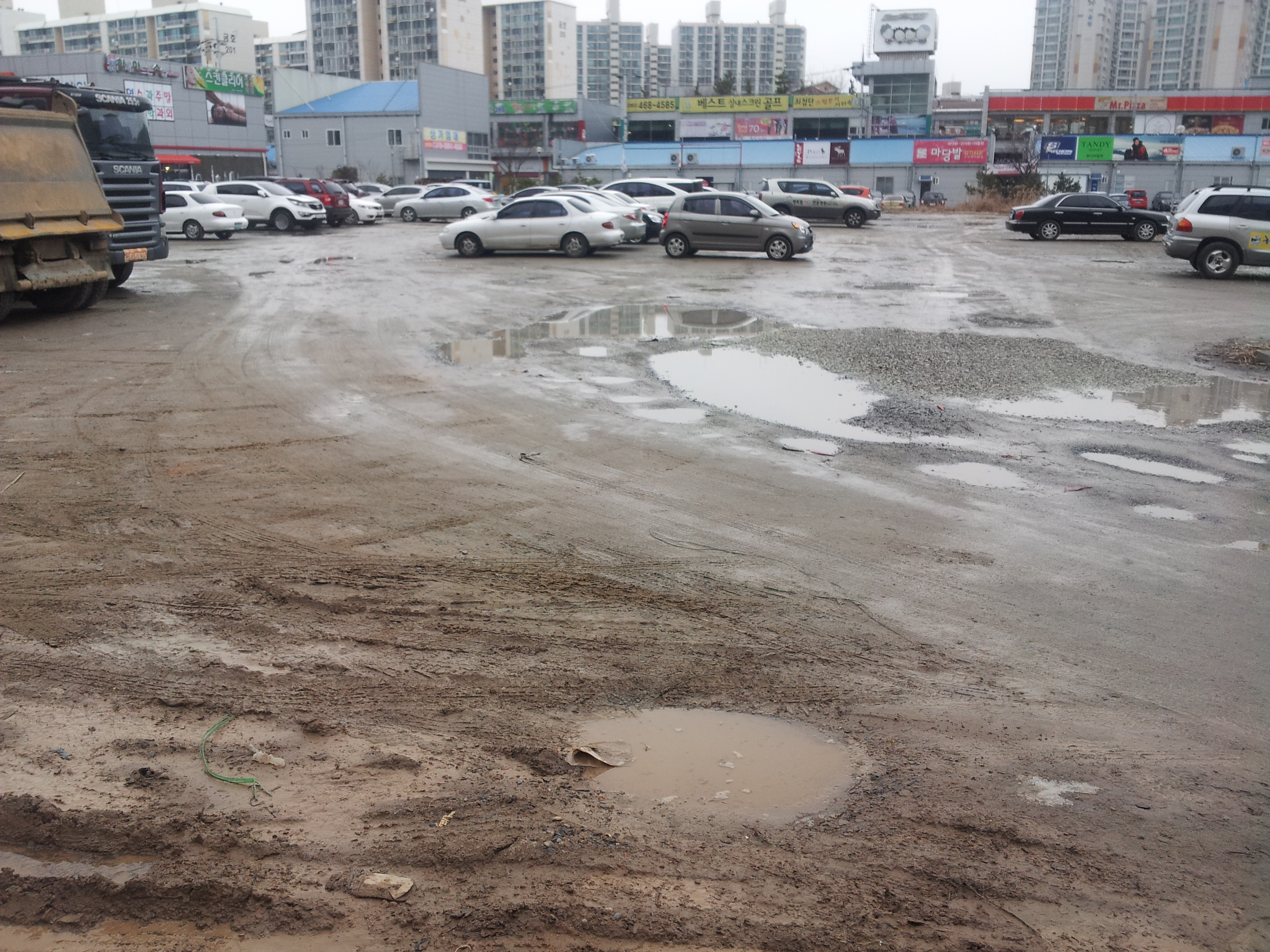 또한 공용주차장도 상태 또한 좋지가 않아 평소에도 곳곳에 깊은 웅덩이에 물이 고여있기 일수며, 신발에 진흙 오염을 묻힌체로 차에 타야 하는 실정입니다. 예산이 부족하여 주차장에 보도블럭 시설이 어려우시다면 자갈이라 깔아서 군산시민이 좀 더 편리하게 이용할 수 있도록 하는 바람입니다.