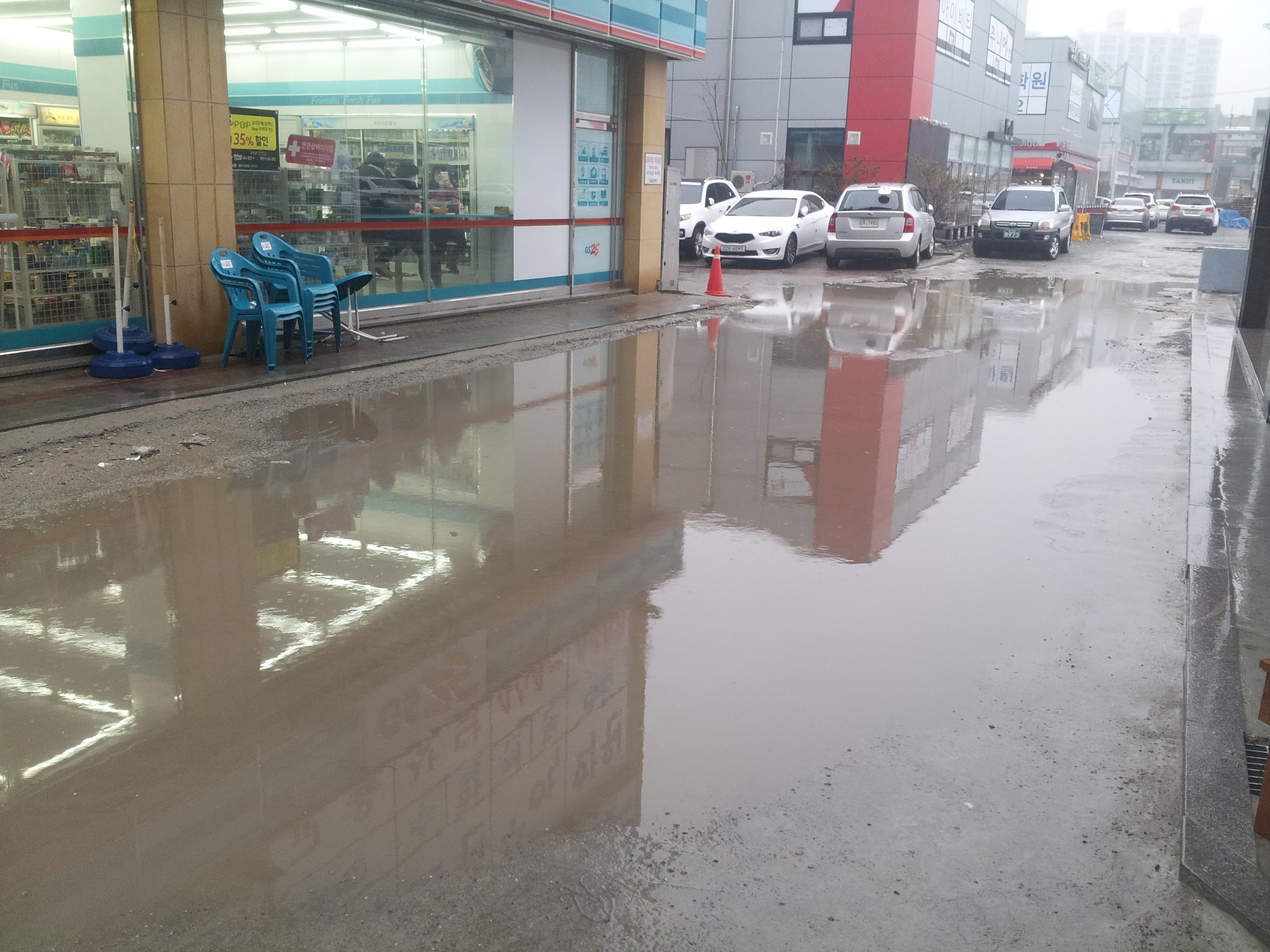얼마전 차편으로 공용주차장을 이용하려고 편의점과 현대옥(나운점)사이의 길로 들어서다 깜짝 놀라 진입을 못하고 조금 지나 다른입구로 들어서야 했습니다.