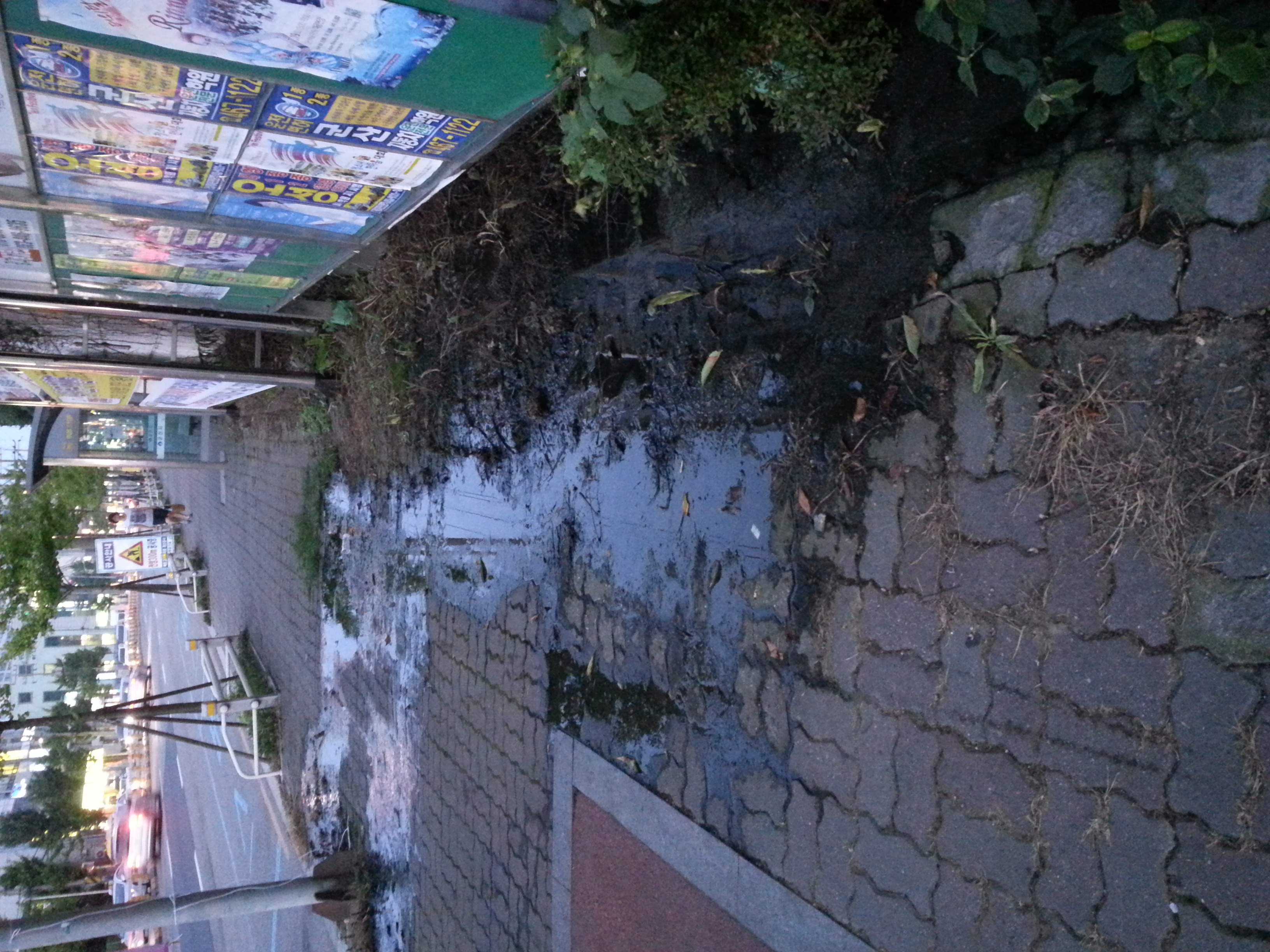 맥도날드 사거리 청솔아파트 큰도로가 인도에 한달넘게 물이 고여있습니다.