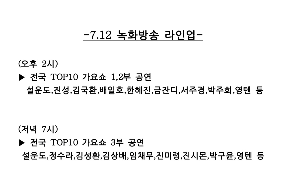 | 49 | 전국 TOP10가요쇼 7월 예매 안내 |