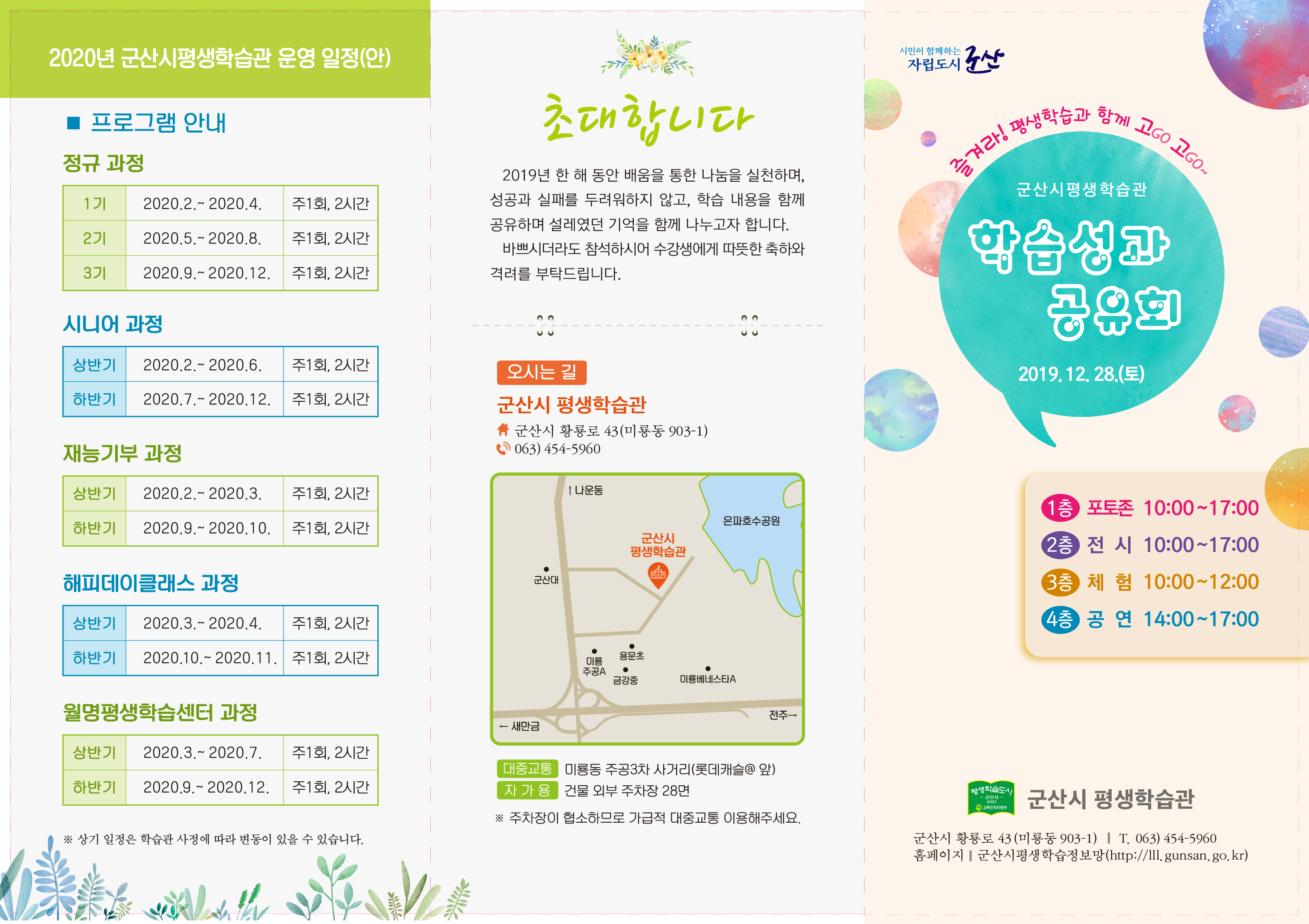 2019년 군산시평생학습관 학습 성과 공유회 안내
