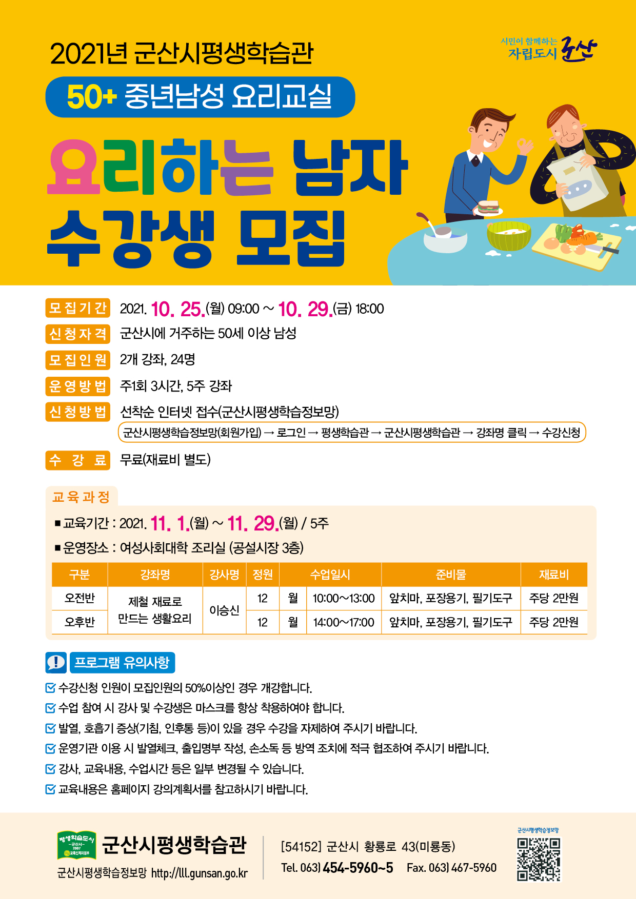 2021년 군산시평생학습관 50+ 중년남성 요리교실
