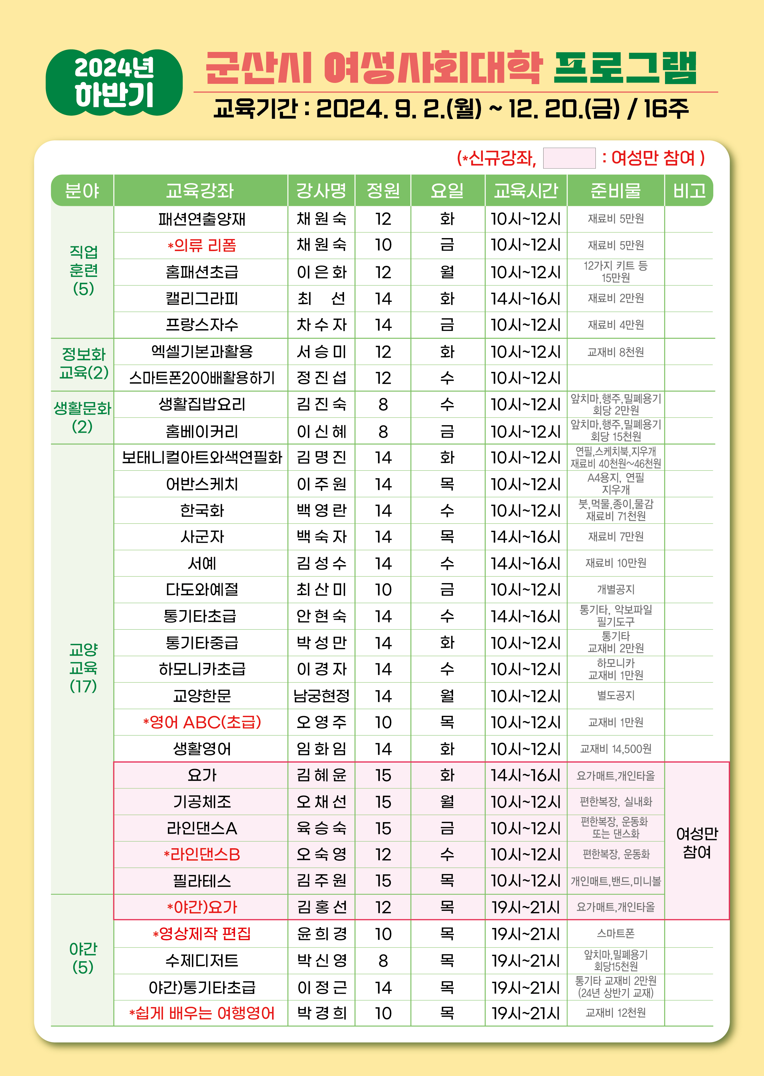 2024년 하반기 여성사회대학 프로그램 수강생을 모집합니다.