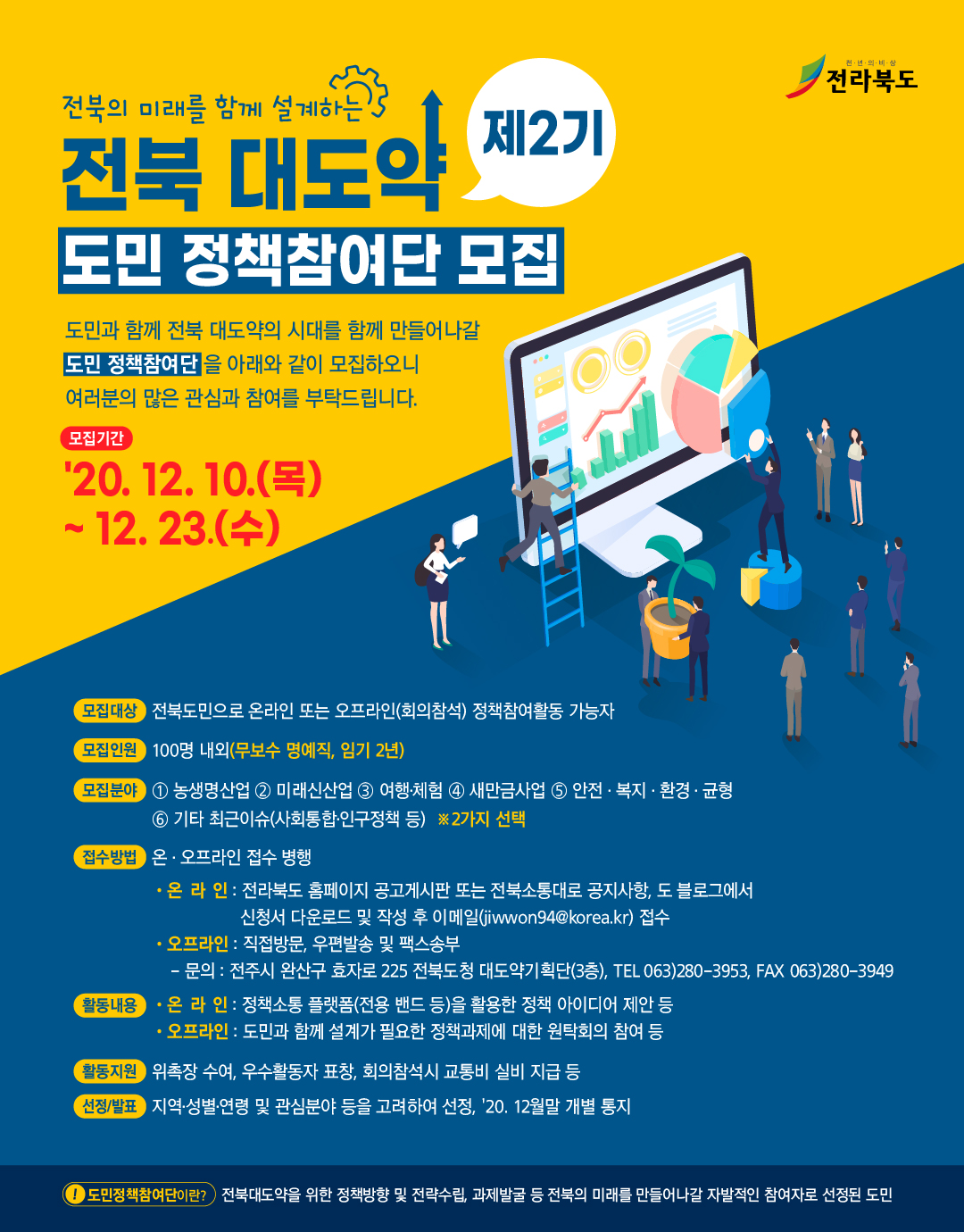 전북 대도약의 시대를 함께 만들어나갈 제2기「도민 정책참여단」을 모집하오니 시민여러분들의 많은 참여부탁드립니다.