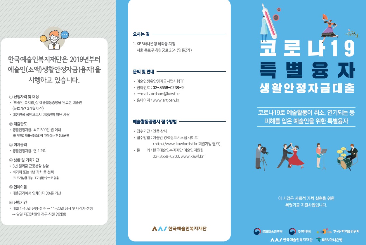 o 사업운영 : 한국예술인복지재단(02-3668-0200)