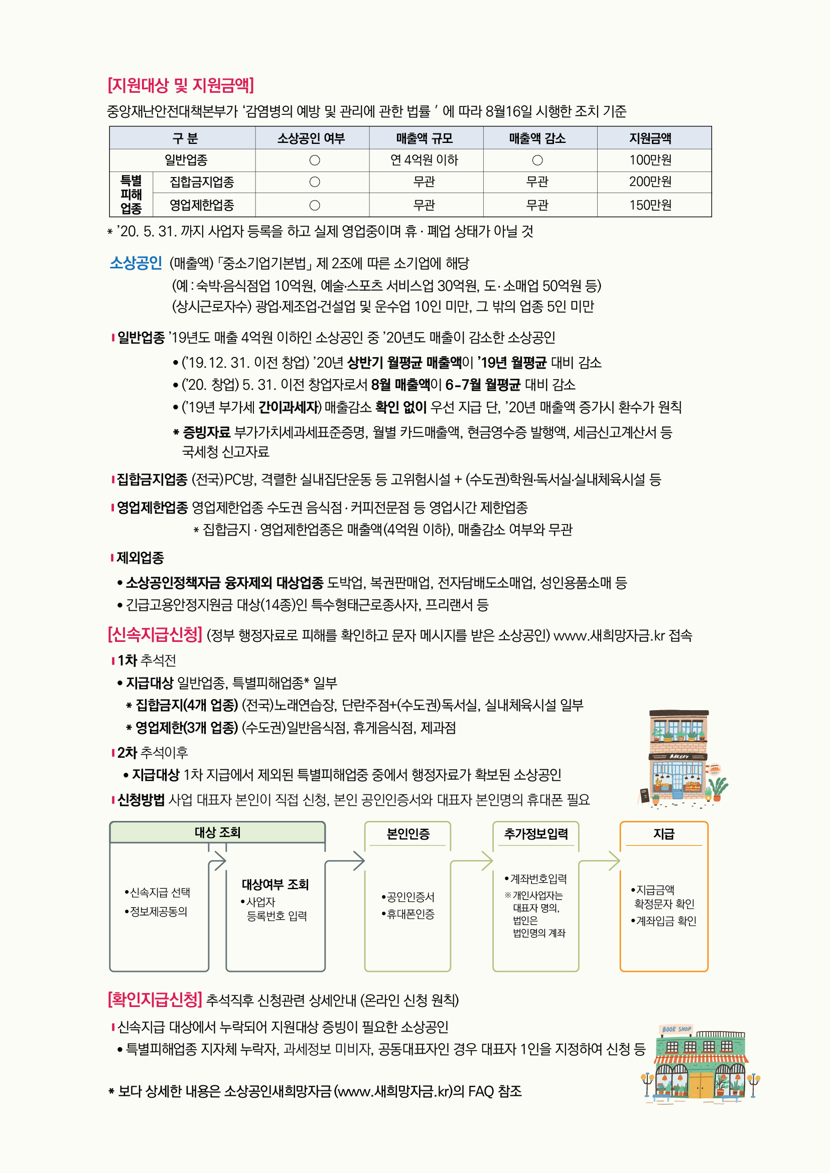 겪은 소상공인을 지원하기 위한 새희망자금을 9.24(목)부터 신청을 받아 9.25(금)부터 순차적으로 지급할 예정입니다.