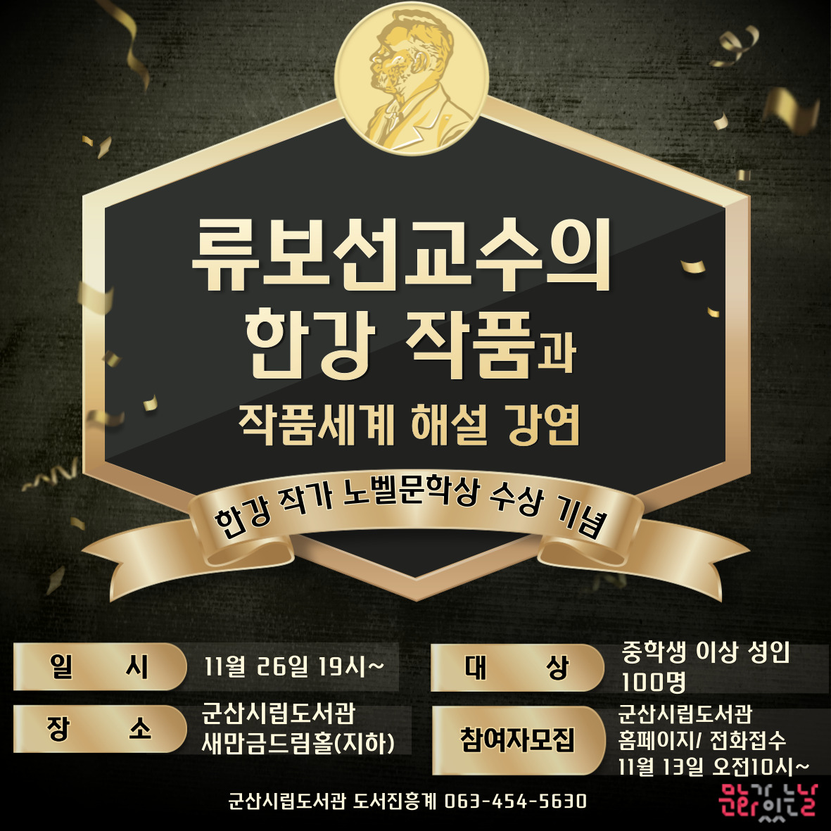 군산시립도서관 [류보선 교수의 한강 작품과 작품세계 해설 강연] 운영