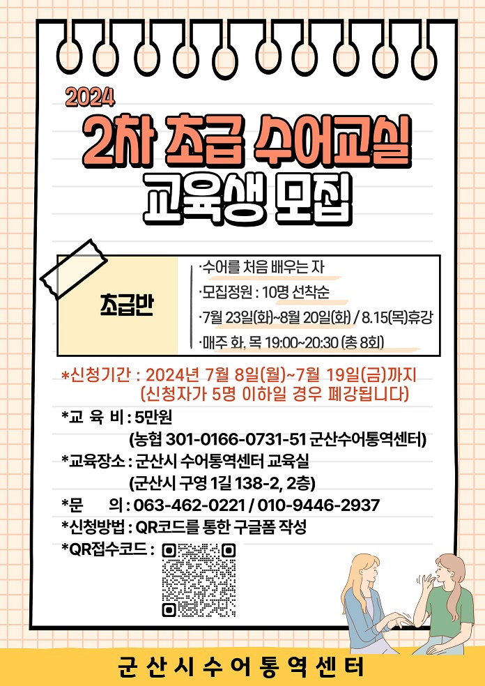 | 253 | 2024년 군산시수어통역센터 2차 초급수어교실 안내 |