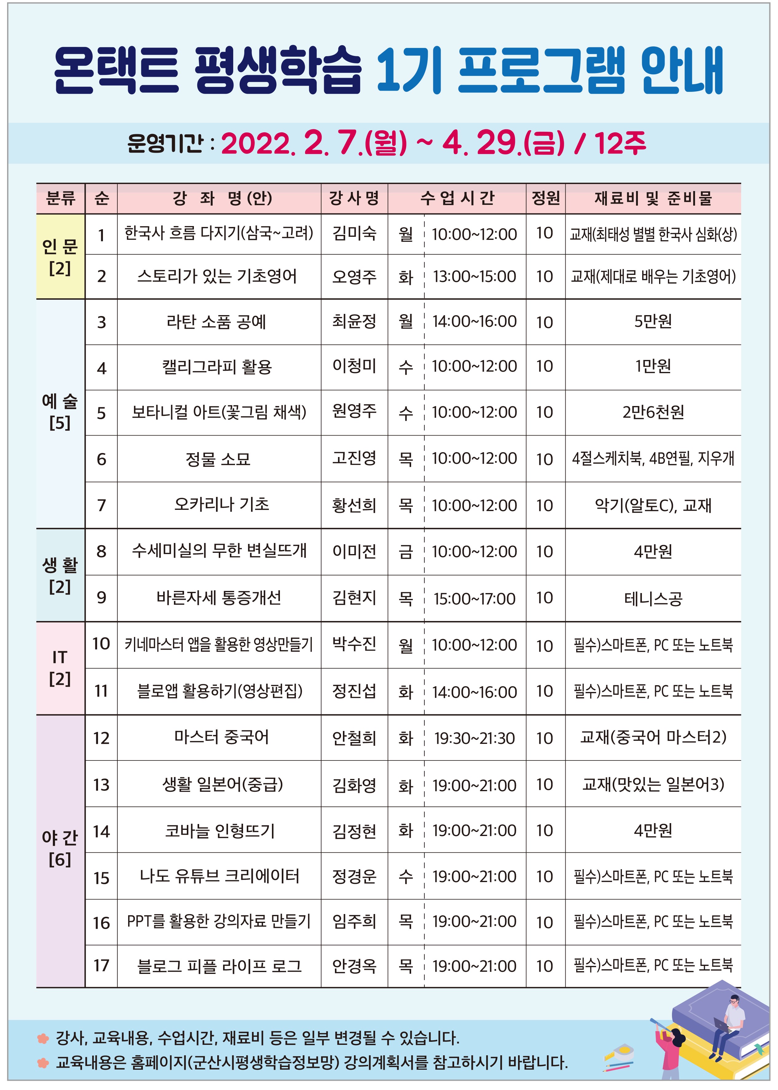 2022년 군산시평생학습관 온택트 평생학습 1기 프로그램 수강생 모집