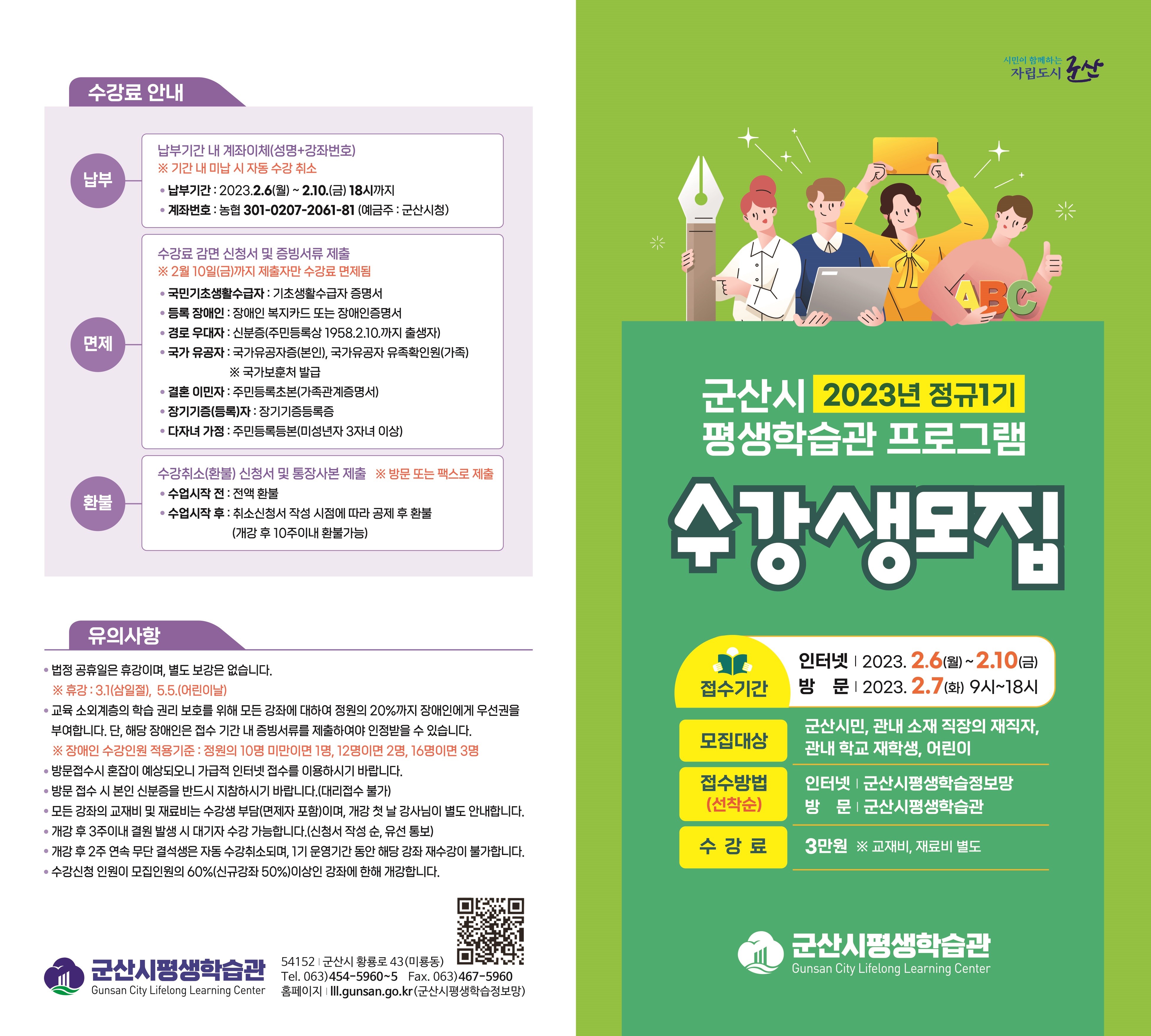 □ 접수방법 : 선착순 인터넷(군산시평생학습정보망) 및 방문(평생학습관)