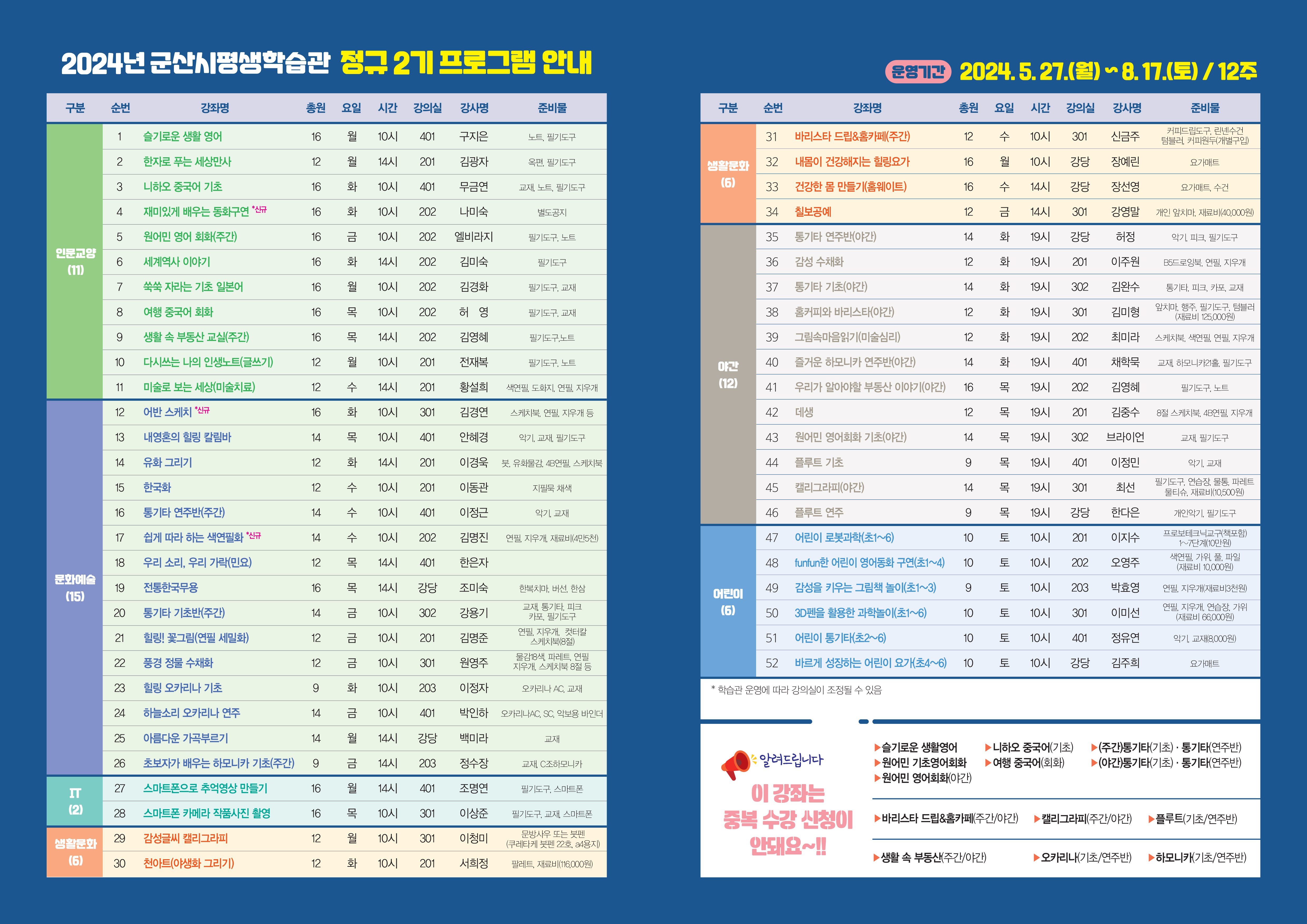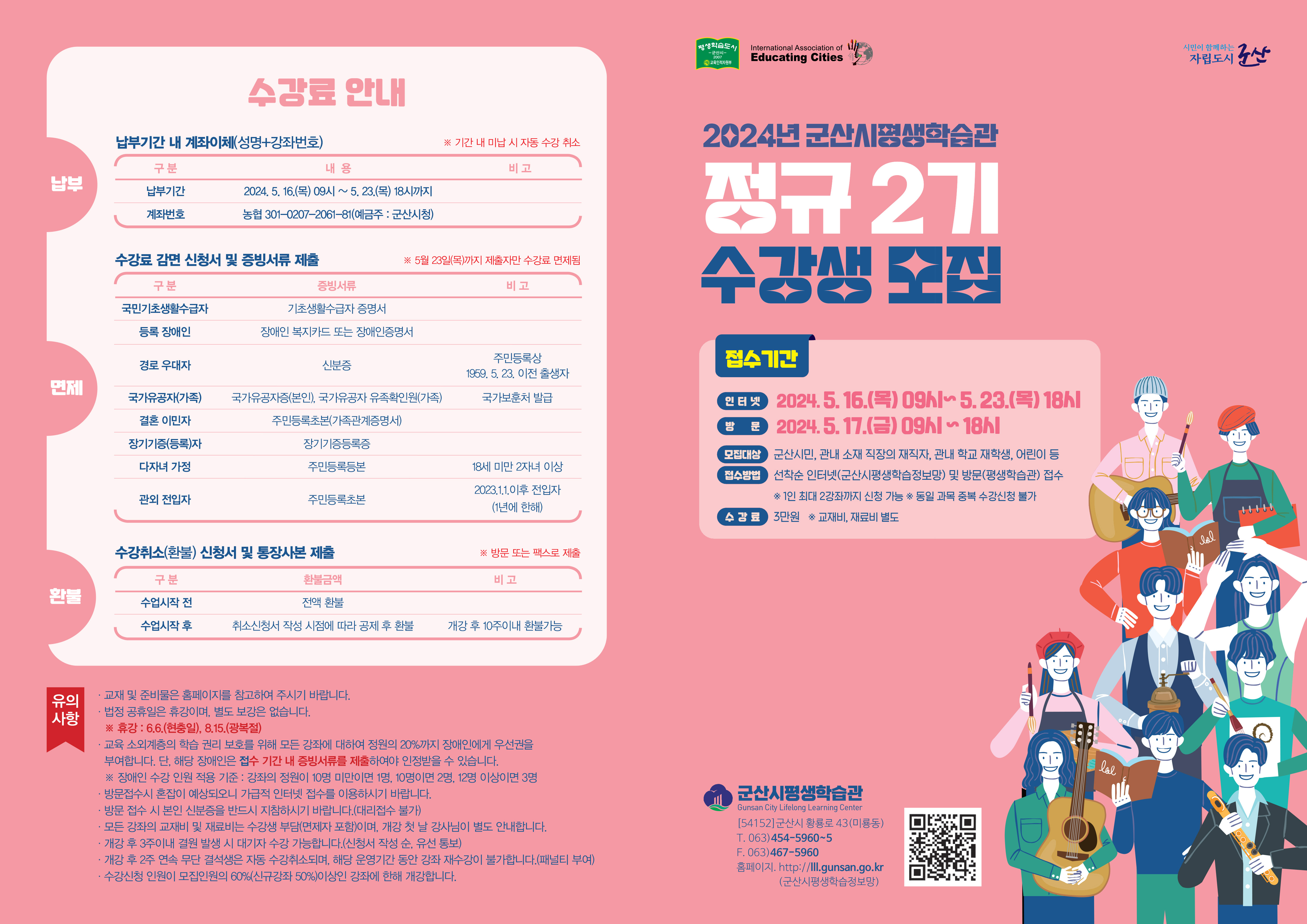 2024년 군산시평생학습관 정규 2기 수강생 모집