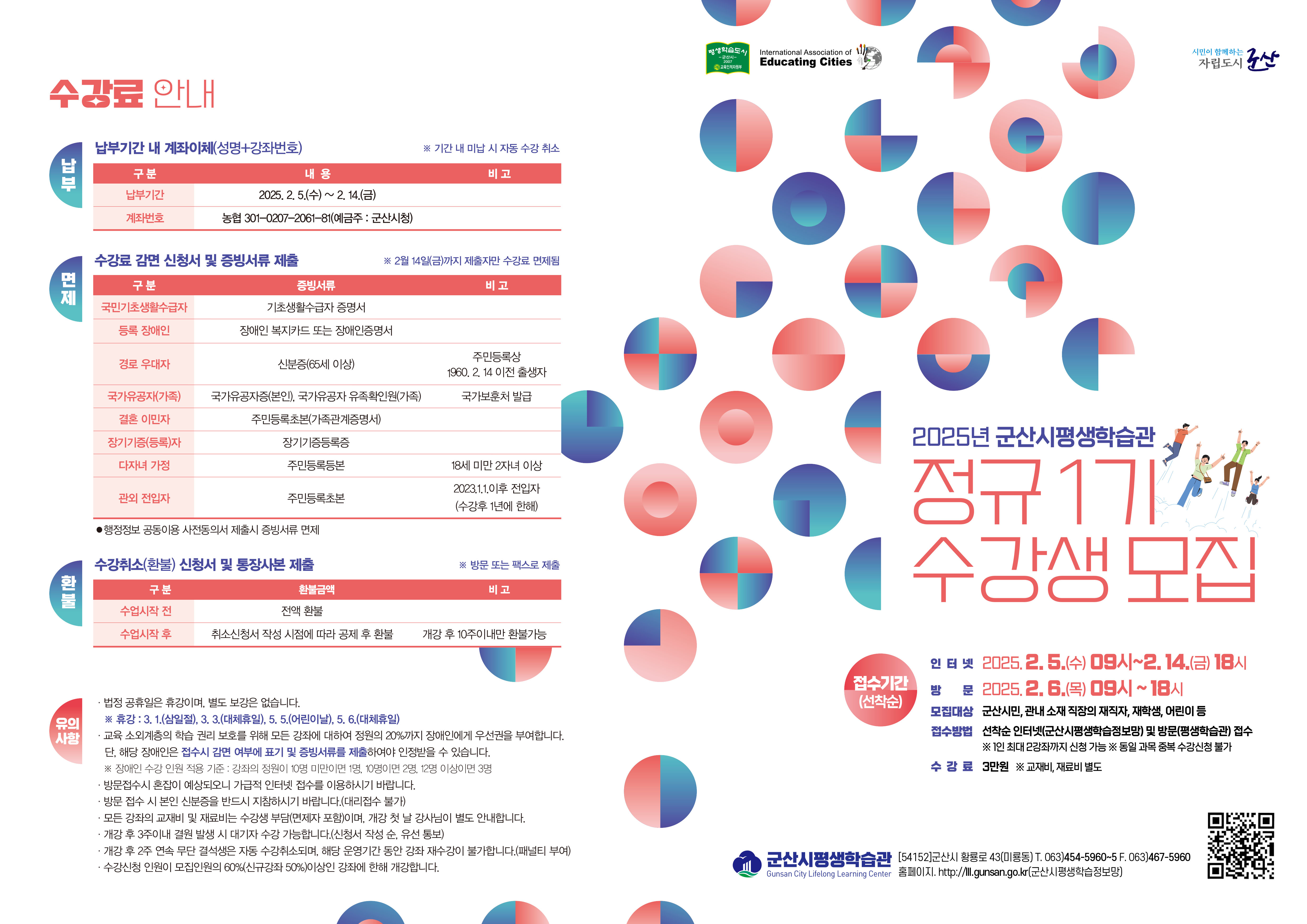 2025년 군산시평생학습관 정규 1기 프로그램 수강생 모집