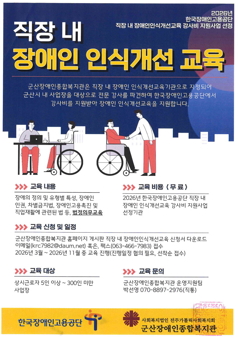 1. 사업명 : 2026년 직장 내 장애인 인식개선 교육