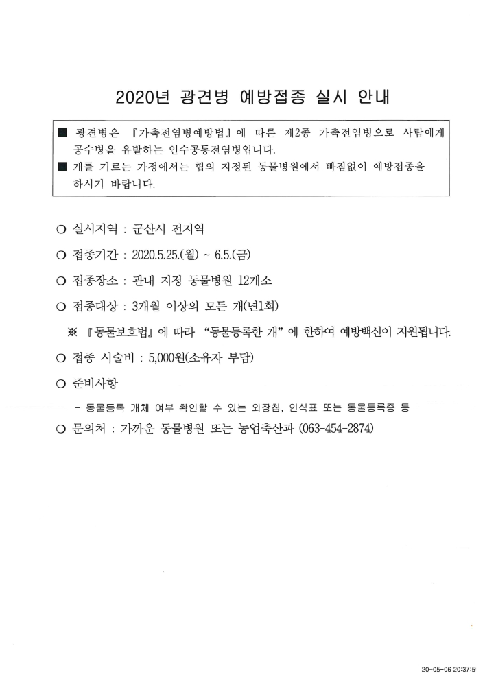 | 488 | 2020년 광견병 예방접종 실시 안내 |