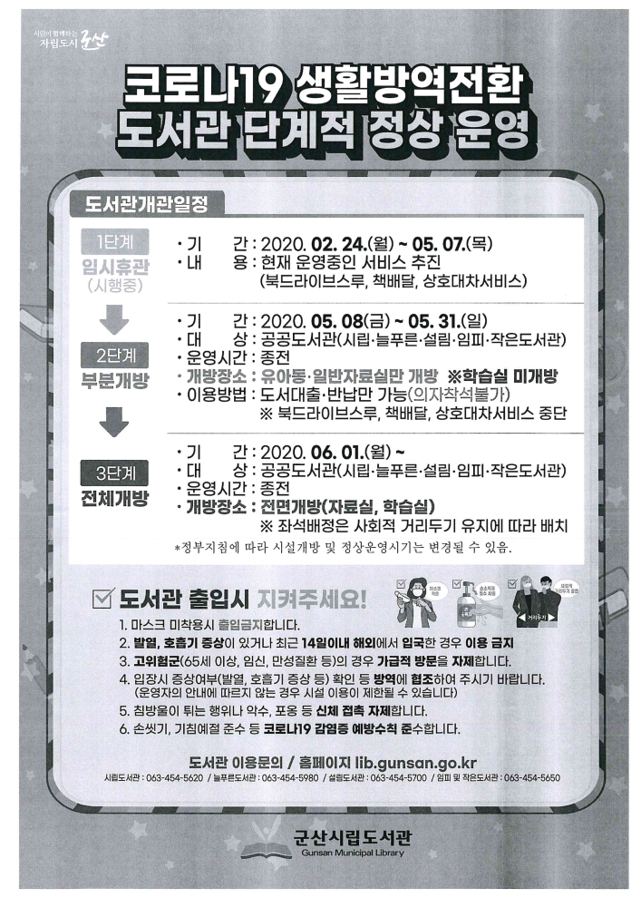 | 486 | 군산시 도서관 단계적 운영에 따른 안내 |