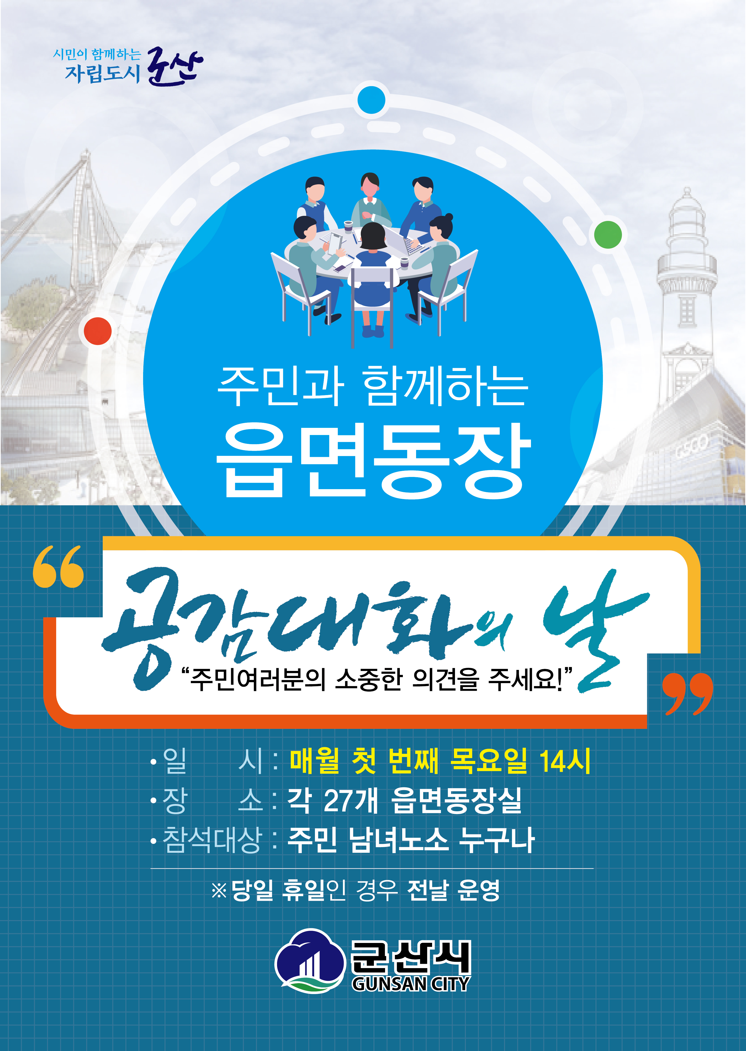 - 내 용 : 주민의견청취, 읍면동장 답변 및 현안설명 등