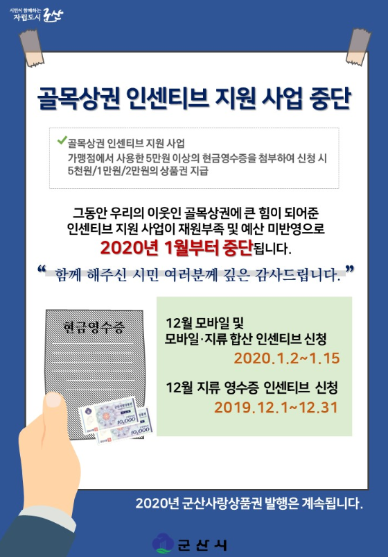 골목상권 인센티브 지원사업 중단 안내