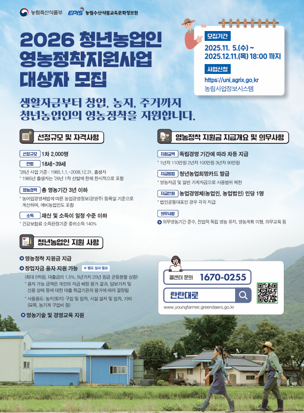 ✲ 1985년 출생자, 2022.1.1.이후 경영체 경영주 등록자 : 26년도 1차 모집 한시적 허용