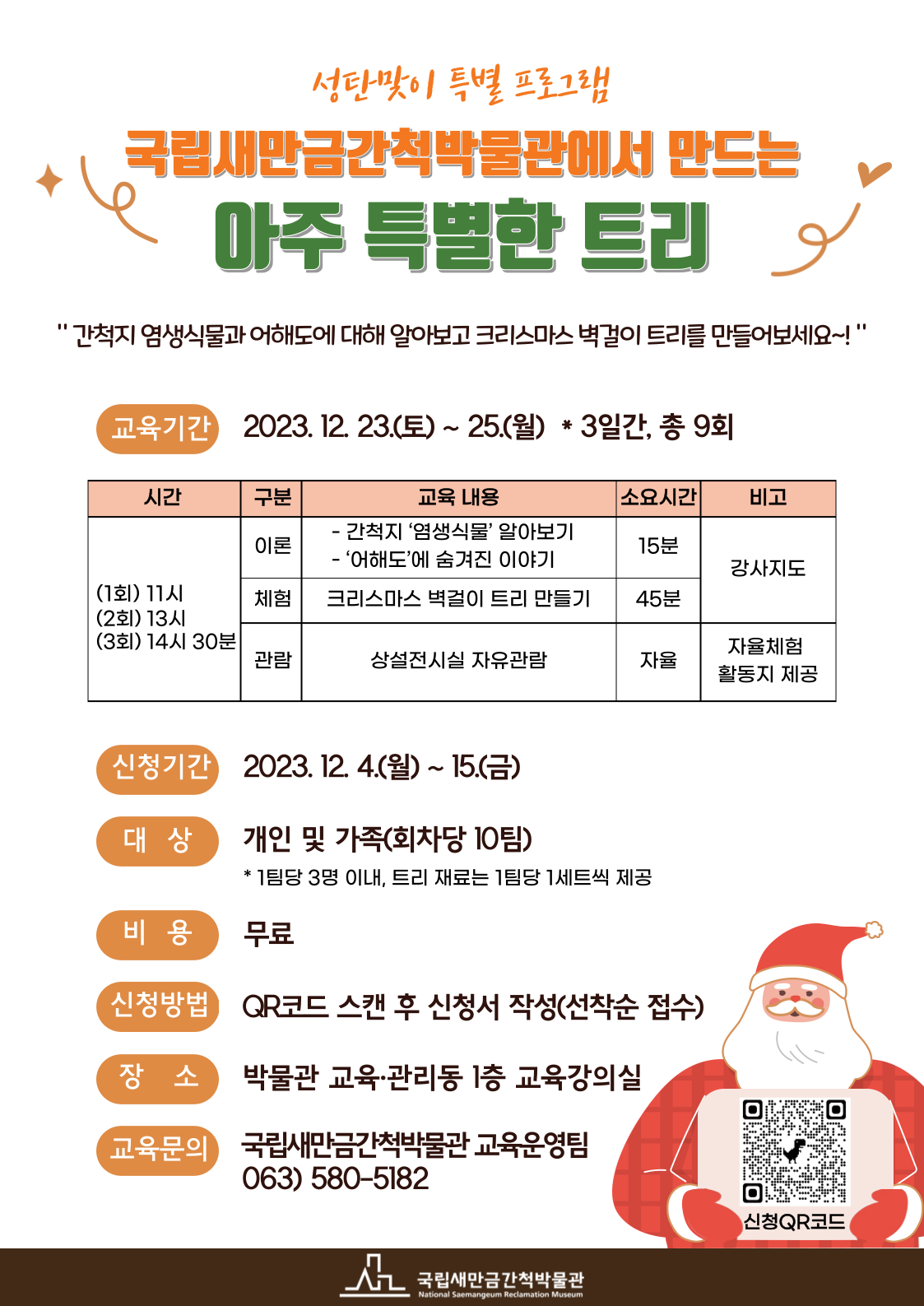 | 654 | 2023년 국립새만금간척박물관 성탄맞이 특별프로그램 안내 |