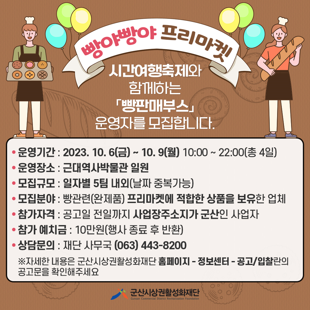| 618 | [군산상권활성화재단] 빵야빵야 프리마켓 운영자 모집 |