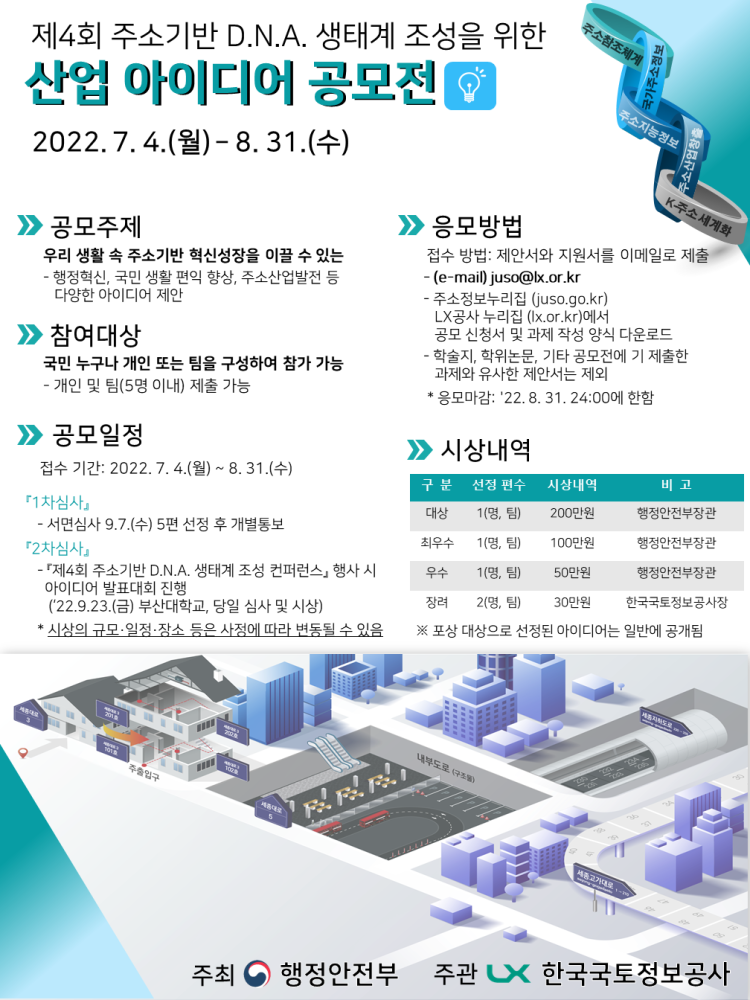 | 476 | '22년 주소기반 D.N.A. 생태계 조성을 위한 산업 아이디어 공모전 공고 |
