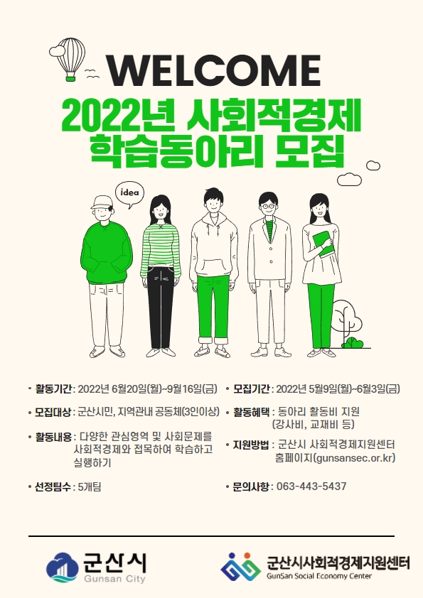 | 453 | 2022년 사회적경제 학습동아리 모집 (군산시 사회적경제지원센터) |