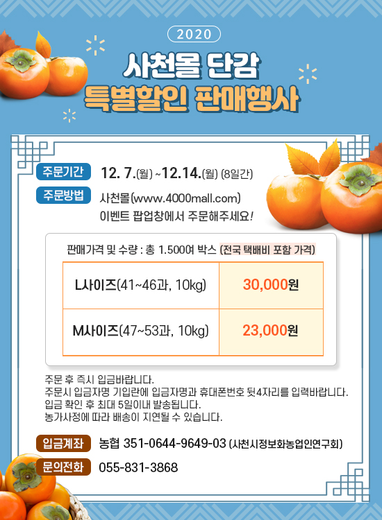 | 161 | [사천시] 2020년 연말맞이 「사천몰」 단감 특별할인 판매행사 홍보 |